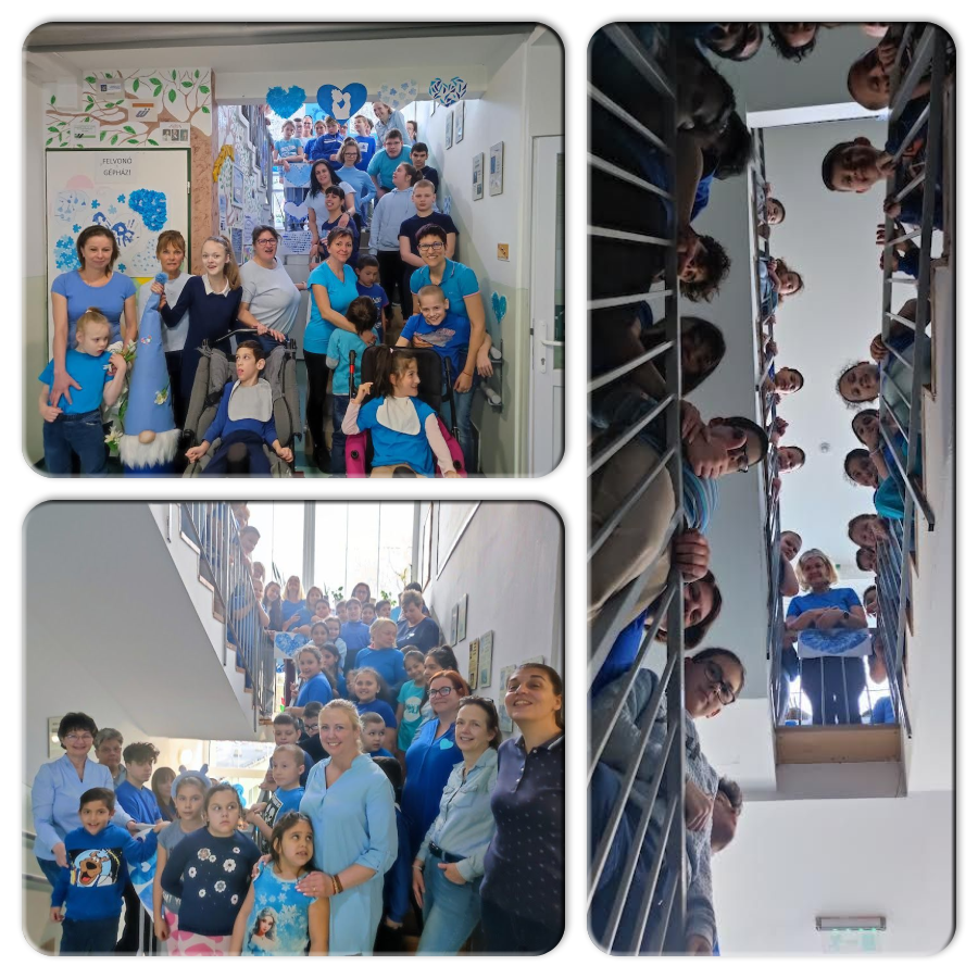 Iskolánk tanulói az Autizmus Világnapja alkalmából, kékbe öltözködtek,