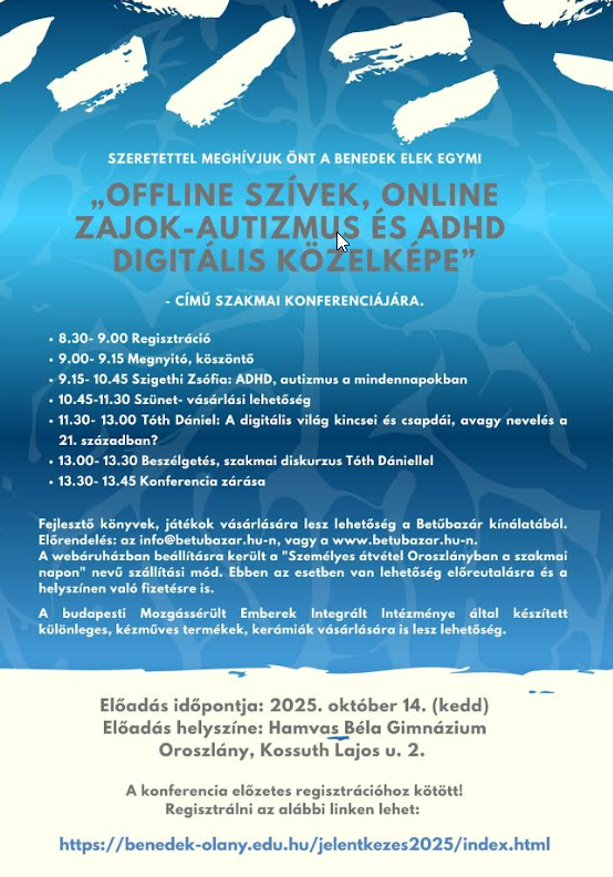 ,, OFFLINE SZÍVEK, ONLINE ZAJOK "- autizmus és adhd digitális közelképe c. szakmai konferencia